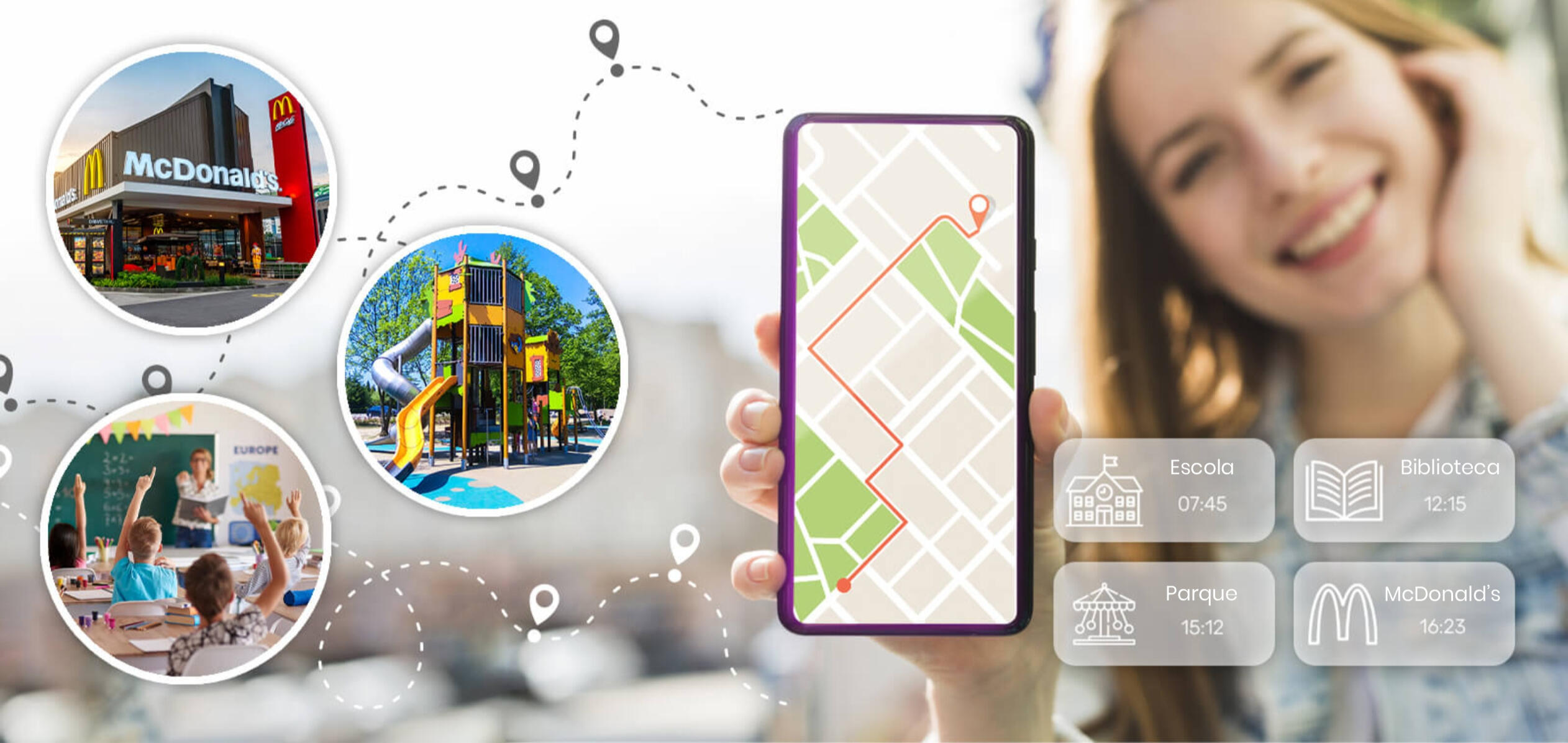 O smartwatch envia dados de localização para smartphones autorizados utilizando leituras GPS, estações de transmissão de redes móveis LBS e WIFI.